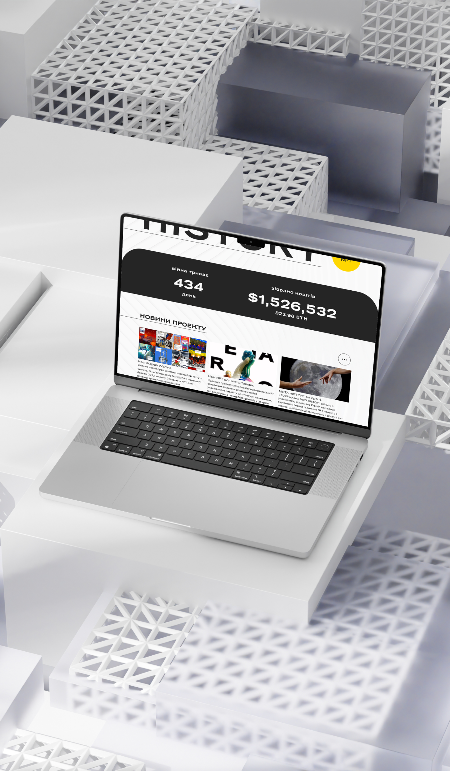 Neugestaltung einer Website für die ukrainische Non-Profit-Organisation Meta History Museum, die NFTs verkauft. Dies war mein Diplomprojekt für den Webdesign-Kurs.